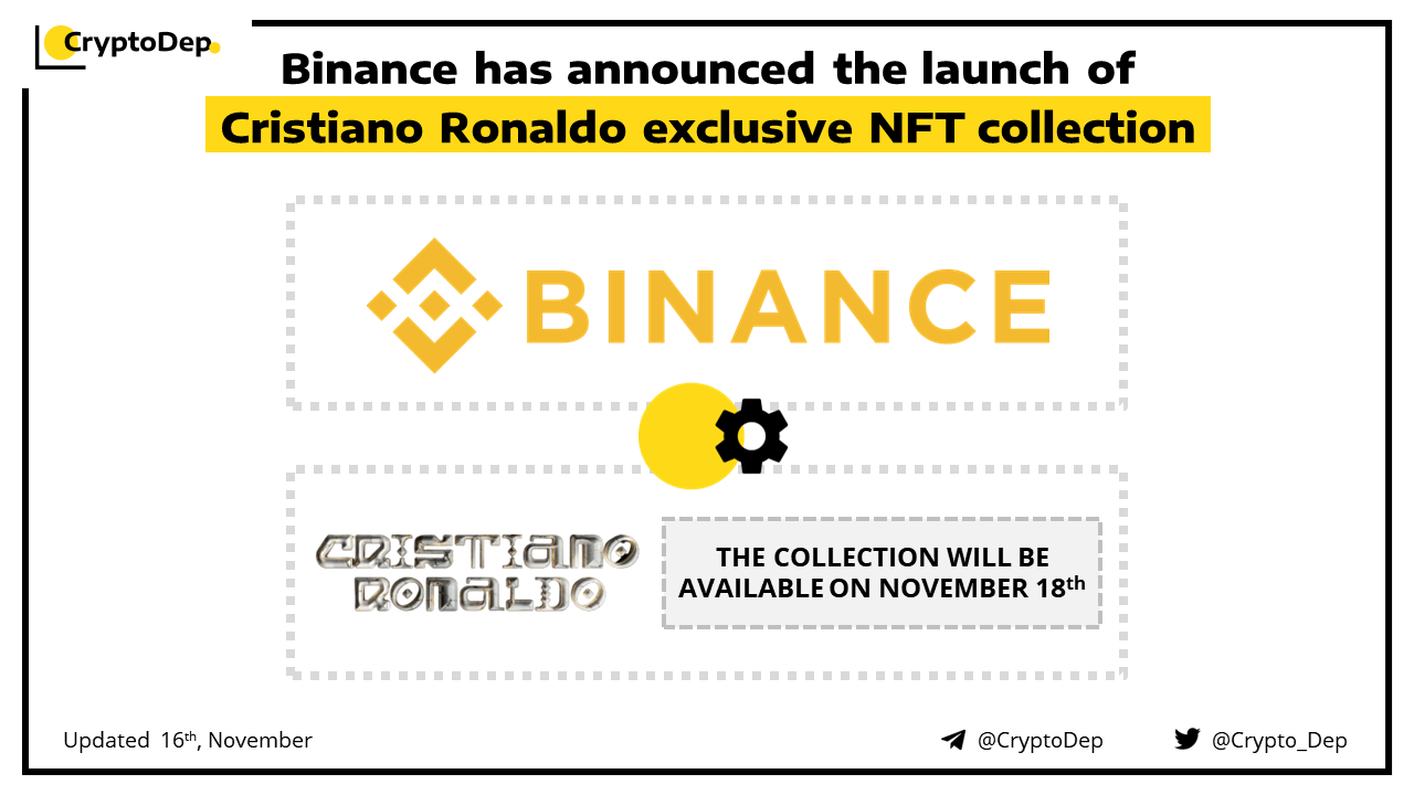 Binance will launch the CR7 NFT collection, the first of a series of drops featuring the football icon Cristiano Ronaldo. NFTs will be available exclusively on Binance, on November 18th. To get a surprise users need to sign up with referral ID RONALDO. Previously Binance declared a multi-year NFT partnership with Cristiano Ronaldo.
