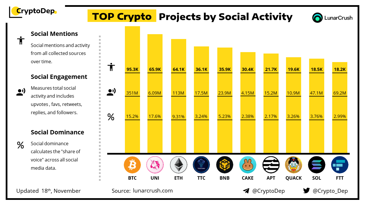 Social Engagement measures total social activity and includes upvotes, favs,retweets, replies, and followers.