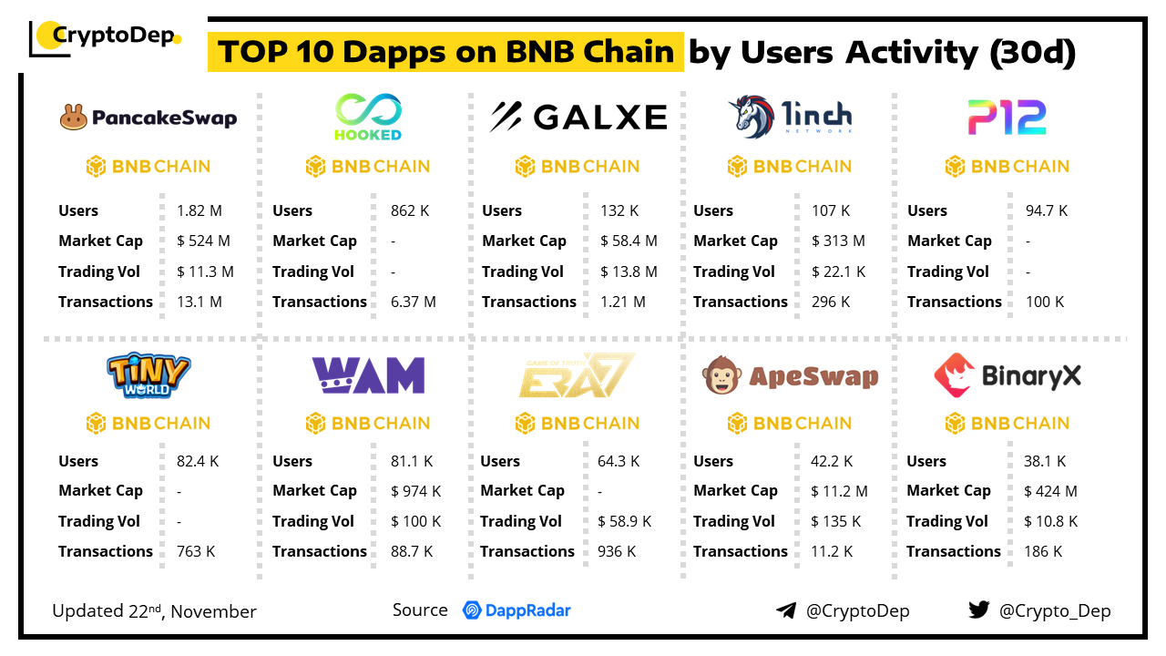 TOP 10 Dapps on BNB Chain by Users Activity (30d)