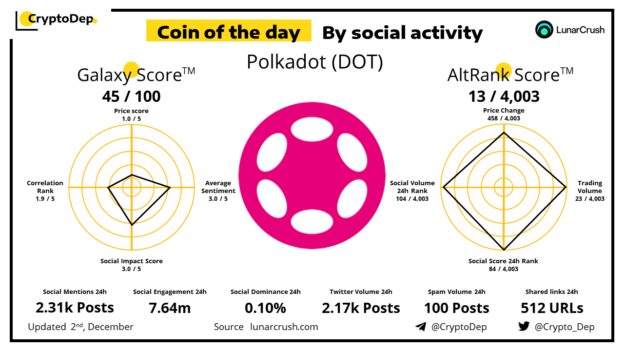 Coin of the day by social activity - Polkadot (DOT).