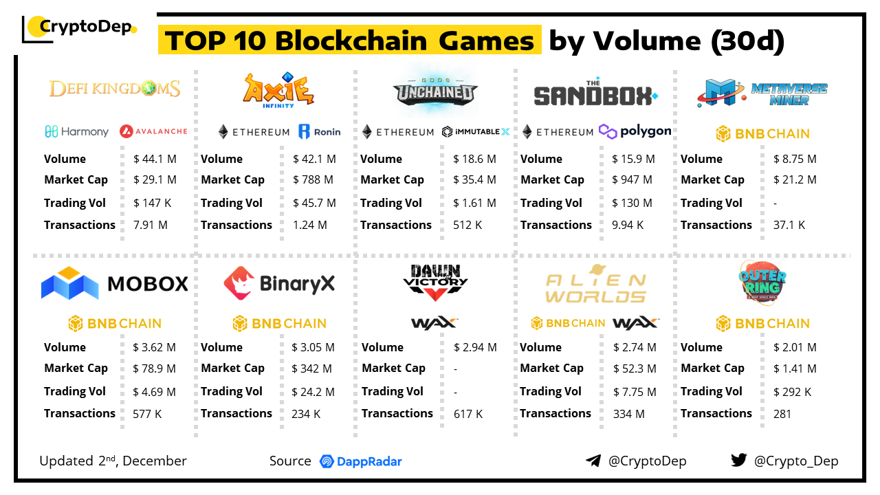 Top 10 Blockchain Games by Volume (30d)