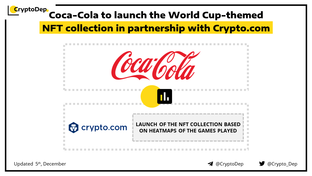 Coca-Cola has announced the release of a set of FIFA World Cup NFTs based on heatmaps of the games played. The collection of 10,000 NFTs, generated by tracking the in-game movements of players in FIFA World Cup matches, will be developed and hosted on Сrуptо.соm's NFT platform.