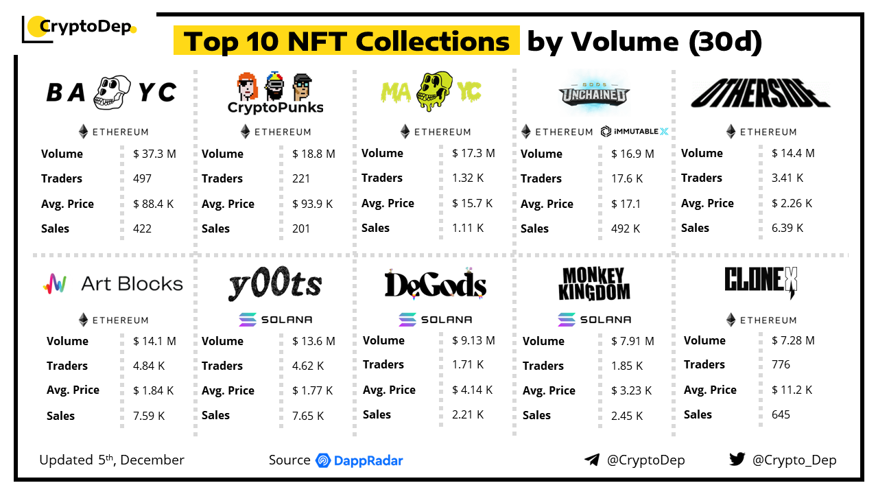 Top 10 NFT Collections by Volume (30d)