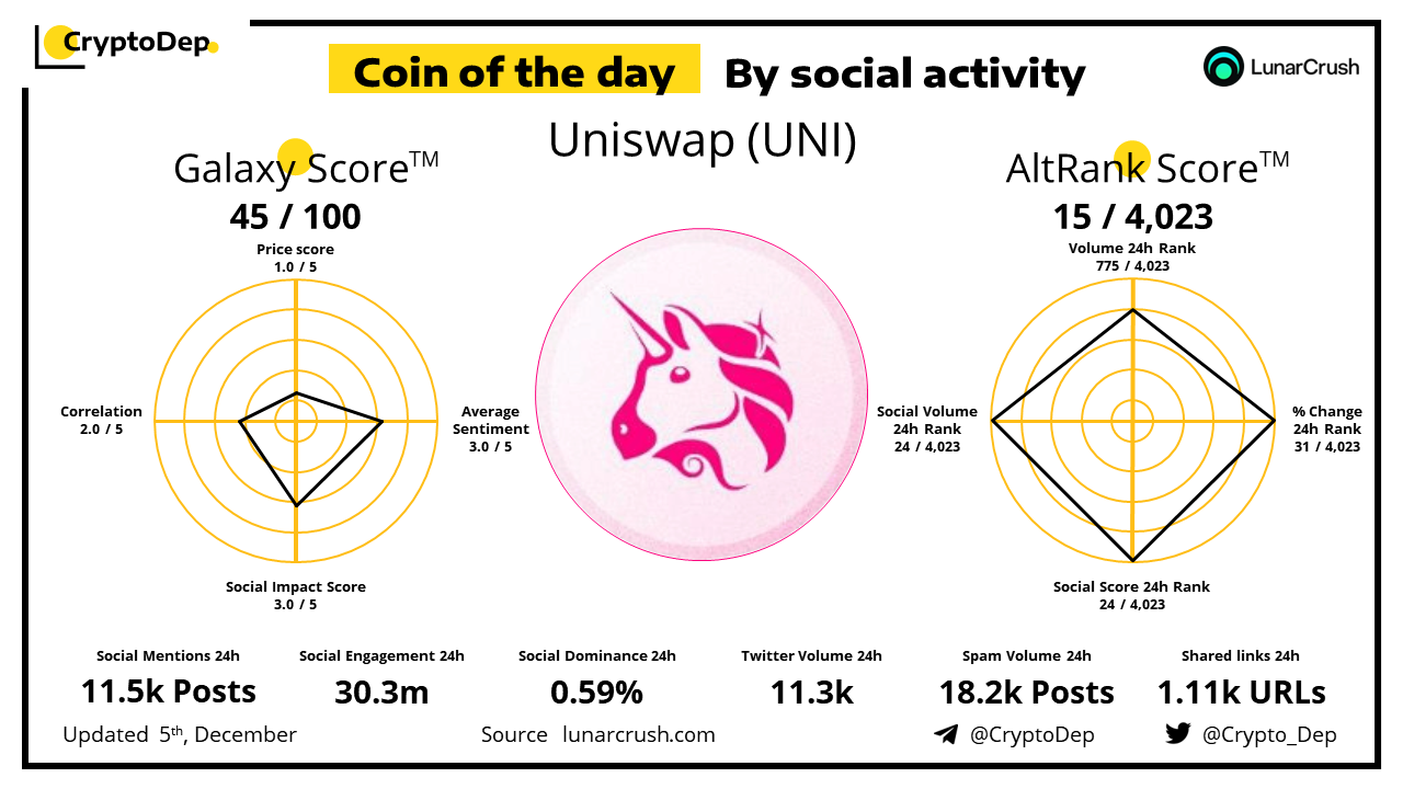 Coin of the day by social activity - Uniswap (UNI).