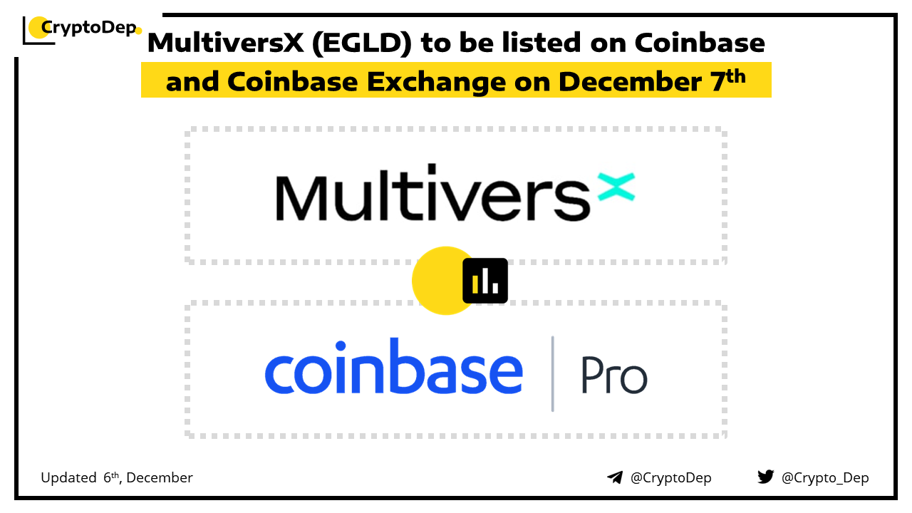MultiversX (EGLD) to be listed on Coinbase and Coinbase Exchange on December 7th