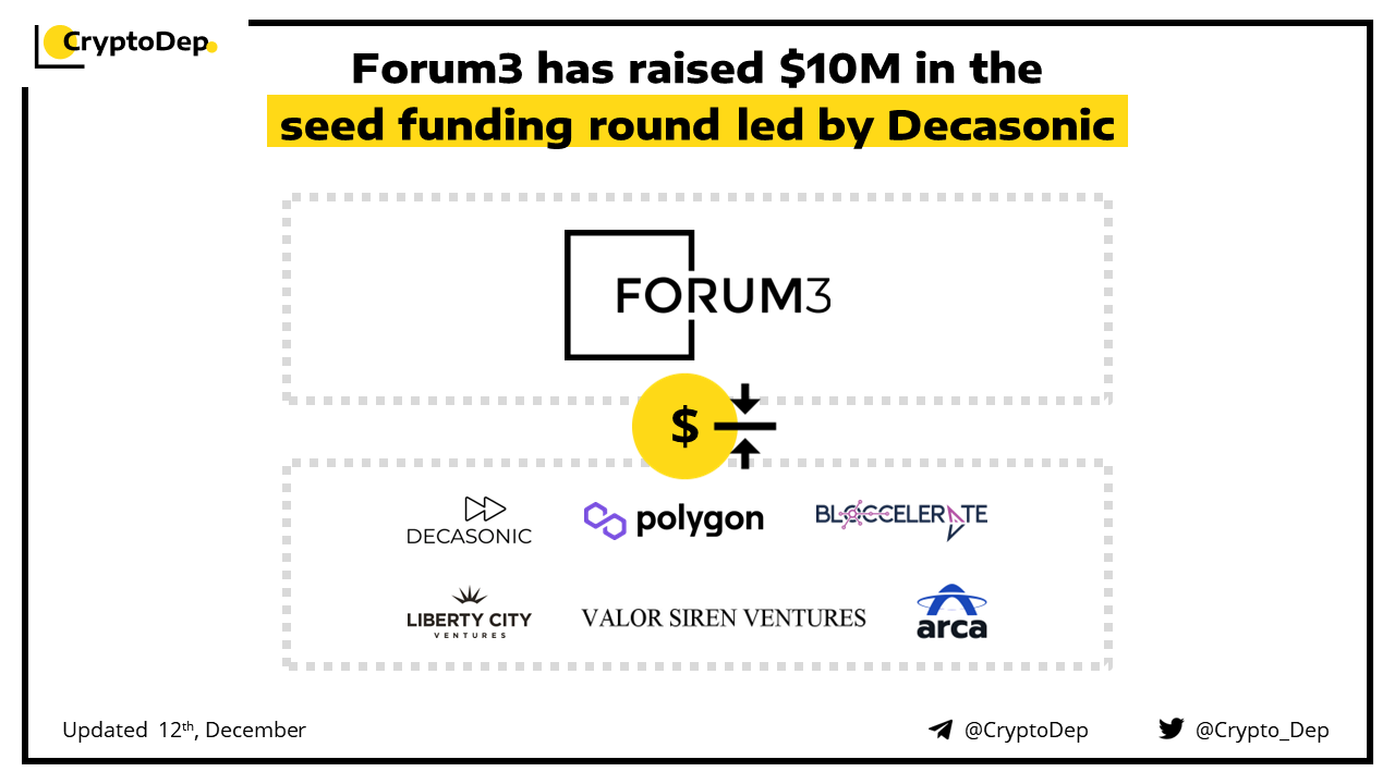 Forum3 has raised $10M in the seed funding round led by Decasonic