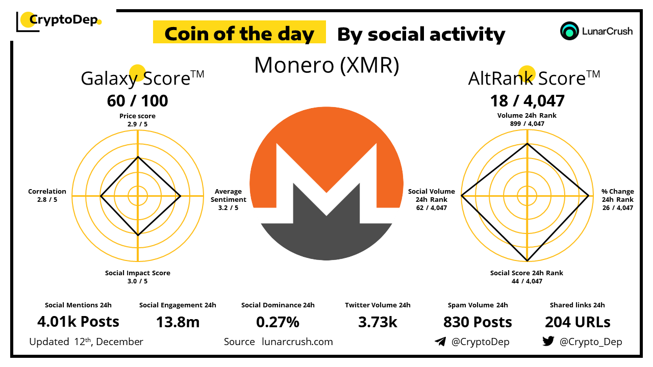 Coin of the day by social activity - Monero (XMR).