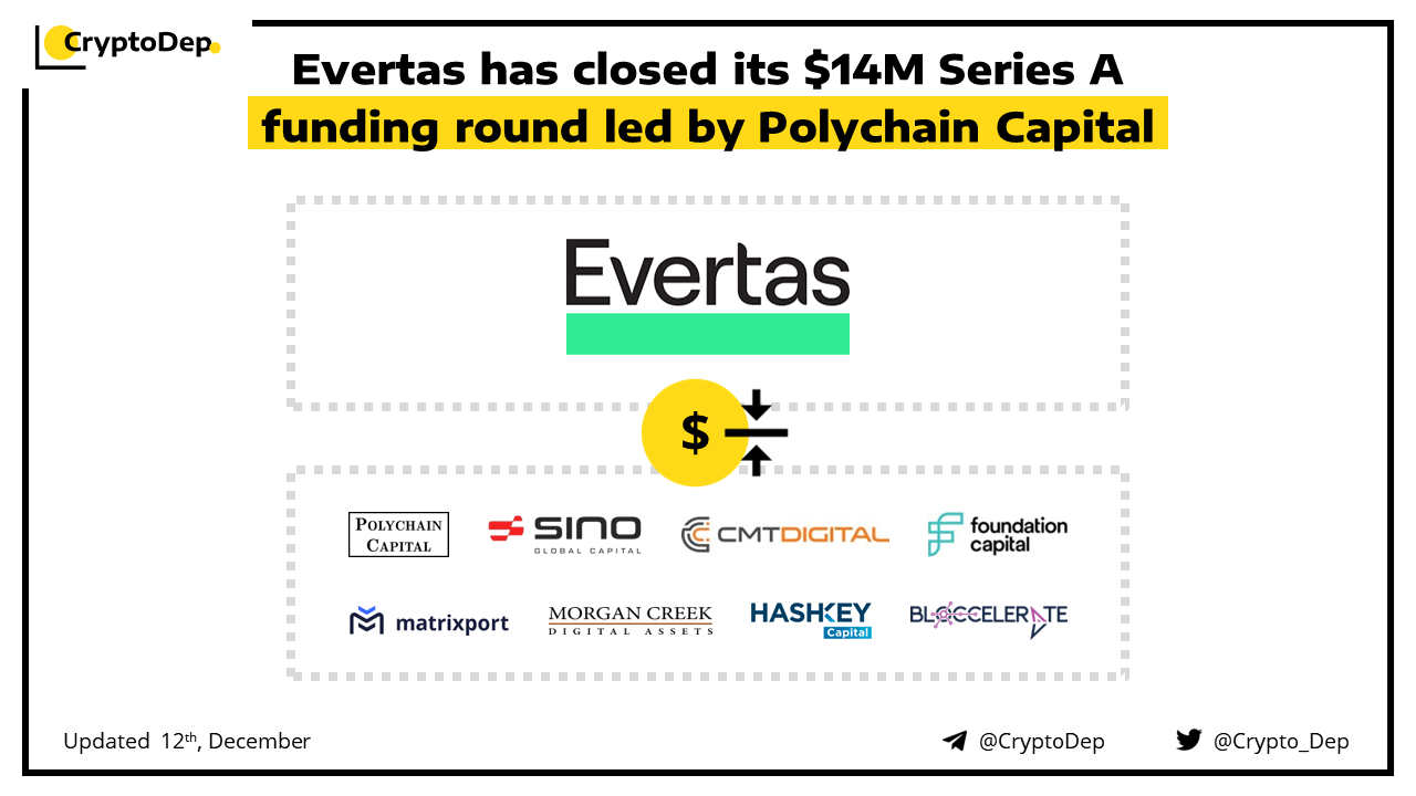 Evertas has closed its $14M Series A funding round led by Polychain Capital