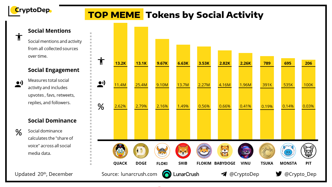 TOP MEME Tokens by Social Activity