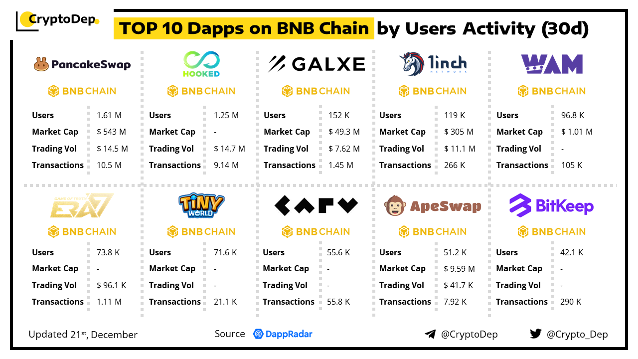 TOP 10 Dapps on BNB Chain by Users Activity (30d)
