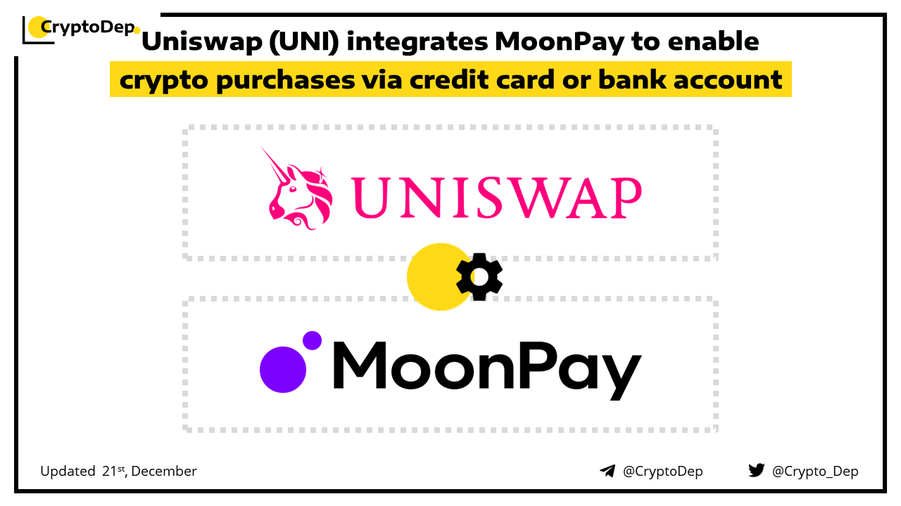 Uniswap (UNI) integrates MoonPay to enable crypto purchases via credit card or bank account