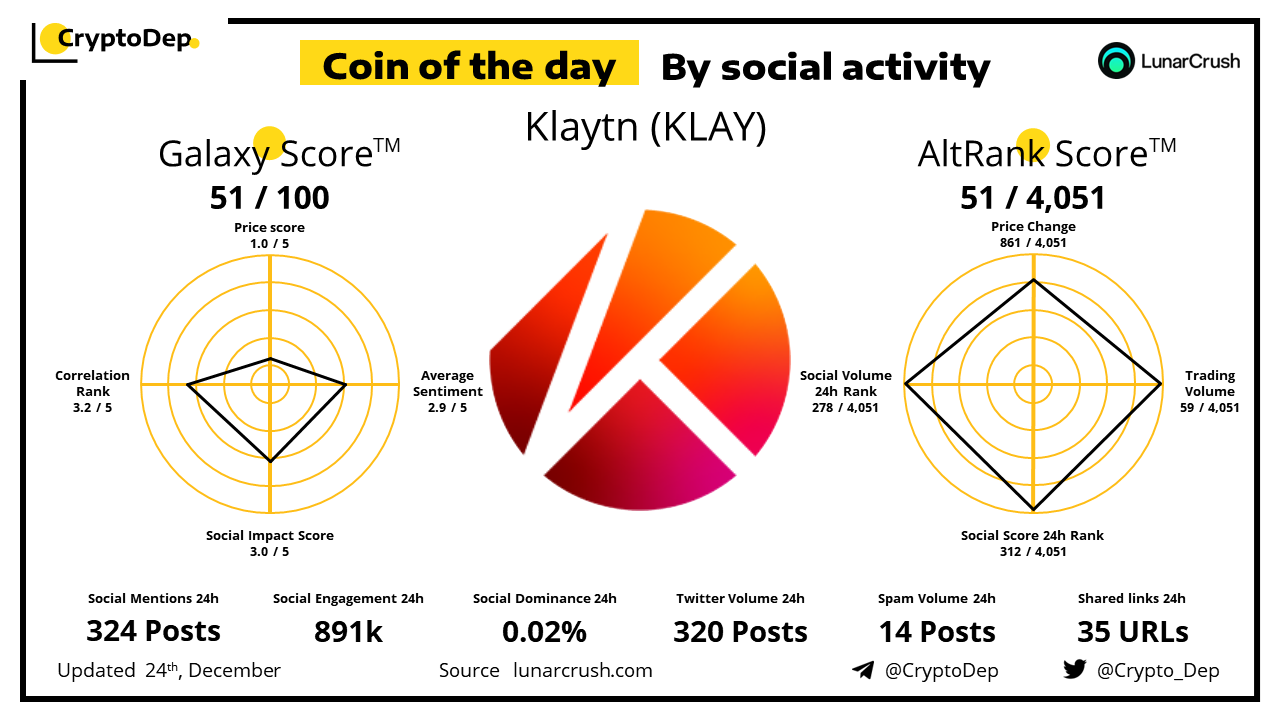 Coin of the day by social activity - Klaytn (KLAY).