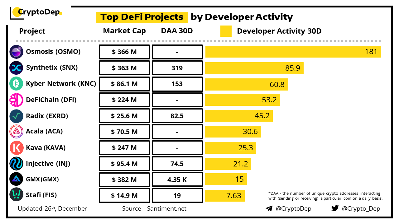 Dev.Activity - the development activity of a project done in its public Github repositories. Development Activity metrics are measured in a number of Github events.