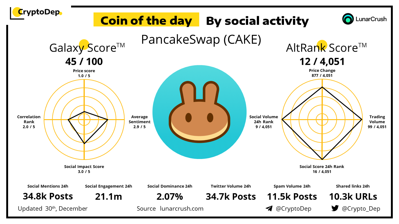 Coin of the day by social activity - PancakeSwap (CAKE).