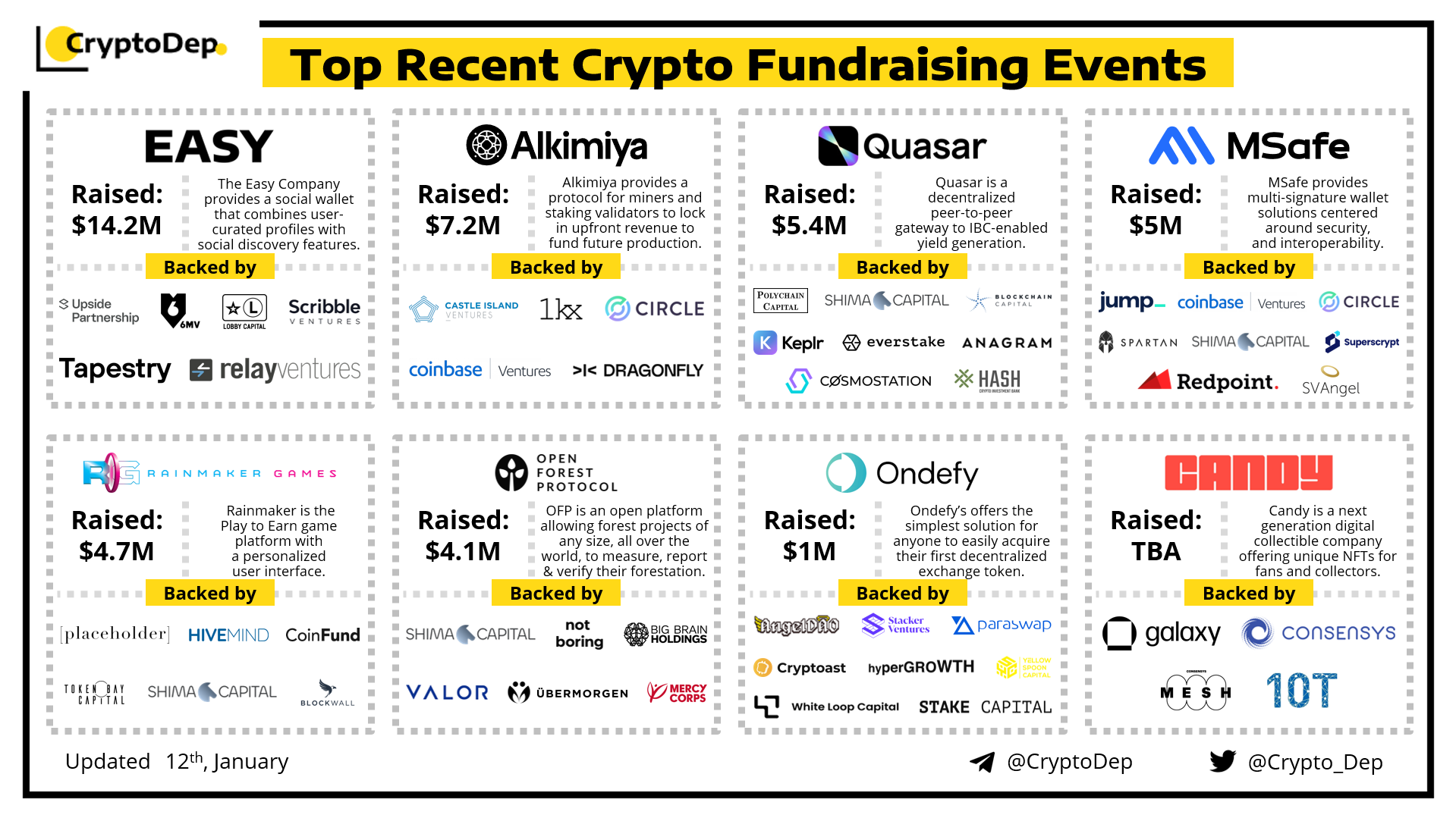 We are excited to present a list of some recent crypto fundraising events, backed by well-known investors such as Coinbase Ventures, Circle Ventures, Polychain Capital, Blockchain Capital, Galaxy Digital, Shima Capital, Consensys, Jump Crypto, CoinFund, Spartan Group, Dragonfly Capital, 1kx, and others. Let's take a look!