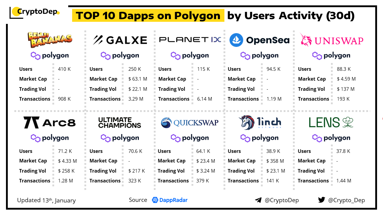 Top 10 Dapps on Polygon by Users Activity (30d)