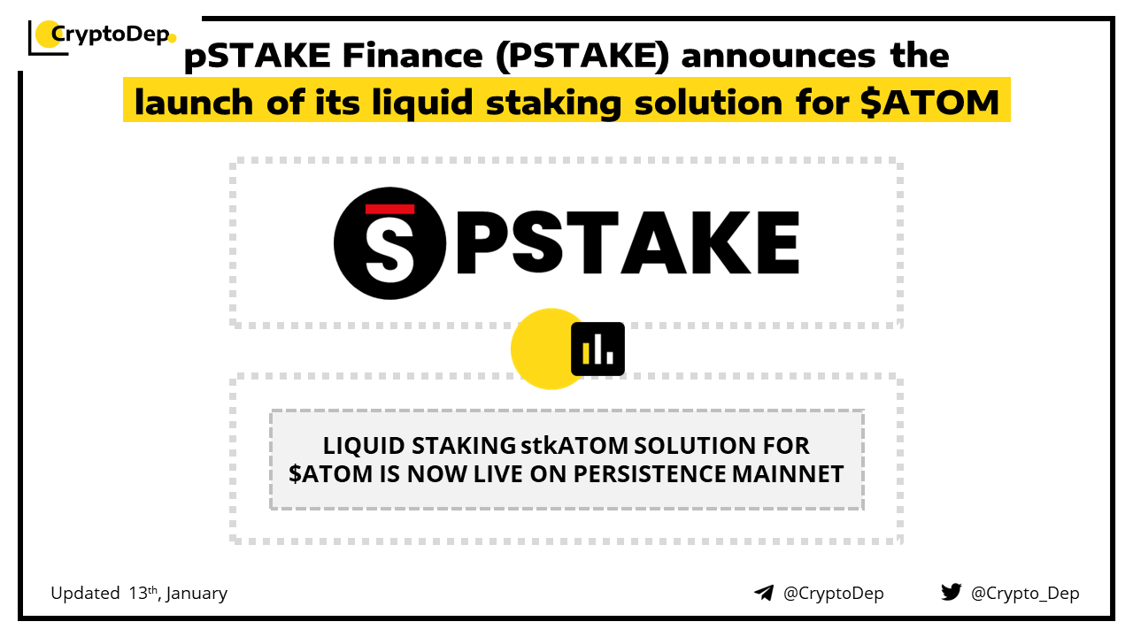 pSTAKE Finance has announced the launch of the stkATOM on Persistence mainnet. With this implementation, users are now able to liquid stake their $ATOM with 62 Cosmos validators. pSTAKE is a liquid staking protocol unlocking the liquidity of staked assets.