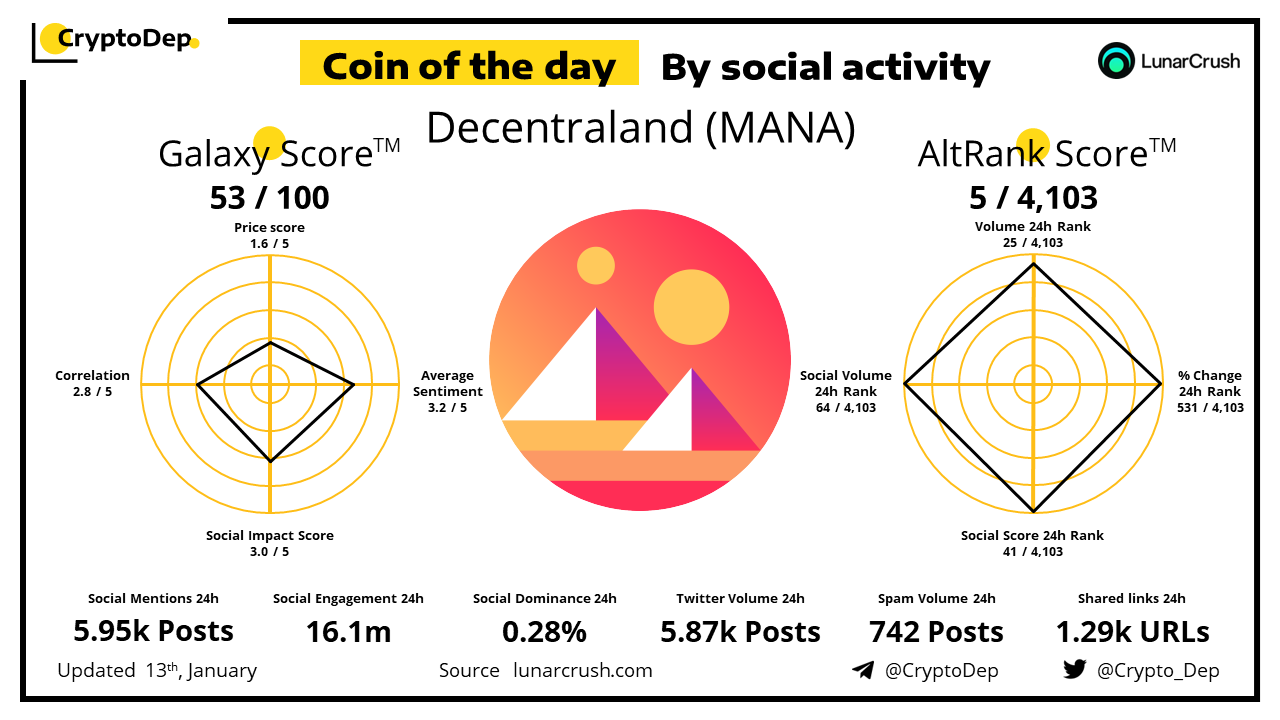 Coin of the day by social activity - Decentraland (MANA).
