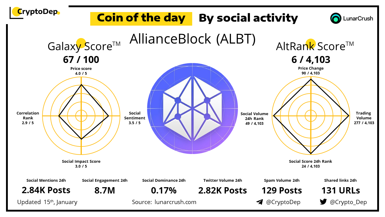 Coin of the day by social activity - AllianceBlock (ALBT).