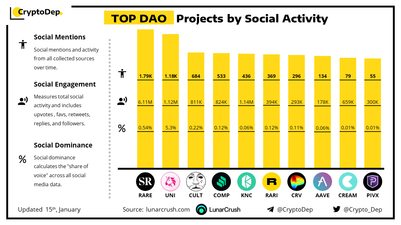 Social Engagement measures total social activity and includes upvotes, favs,retweets, replies, and followers.