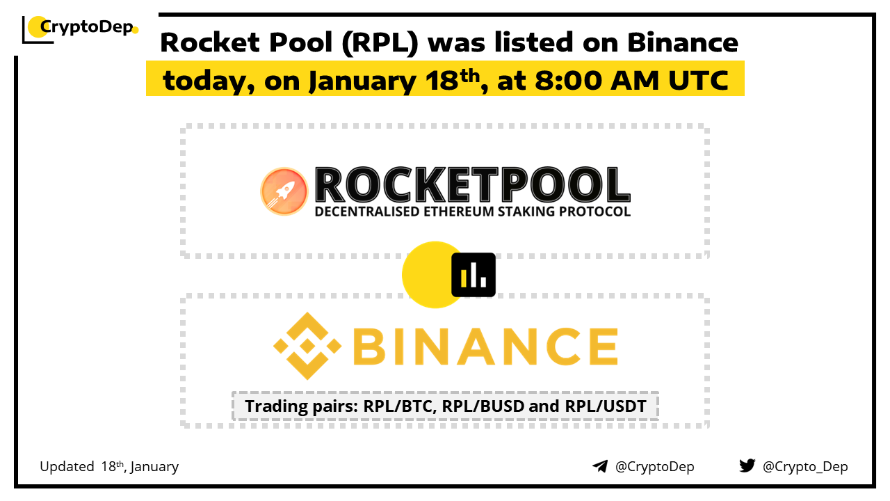 Rocket Pool (RPL) was listed on Binance today, on January 18th