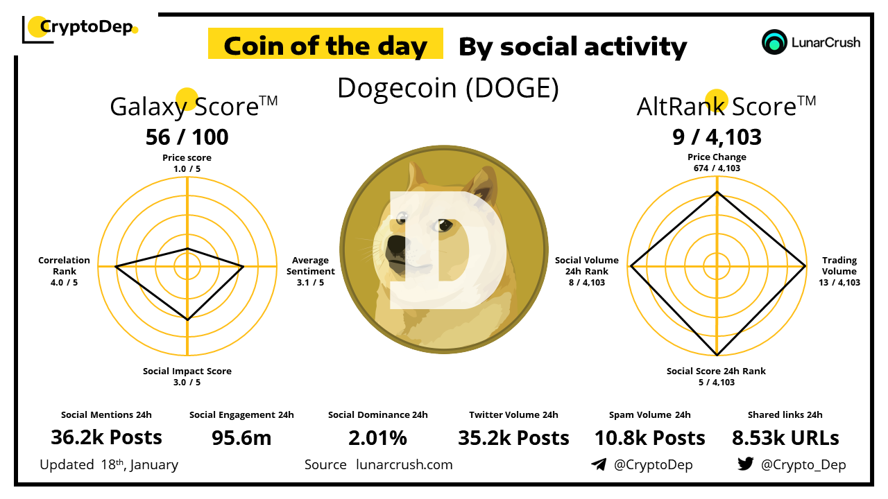 Coin of the day by social activity - Dogecoin (DOGE).
