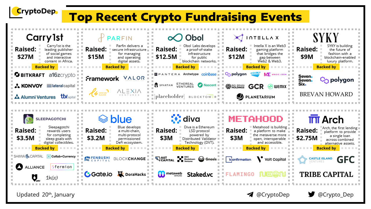 We are excited to present a list of some recent crypto fundraising events, backed by well-known investors such as a16z, Coinbase Ventures, Pantera Capital, Animoca Brands, Spartan, OKX Blockdream, Placeholder, Fenbushi Capital, Polygon, Magic Eden, Seven Seven Six, Shima Capital, Ethereal Ventures, Framework Ventures, 6th Man Ventures, and others. Let's take a look!