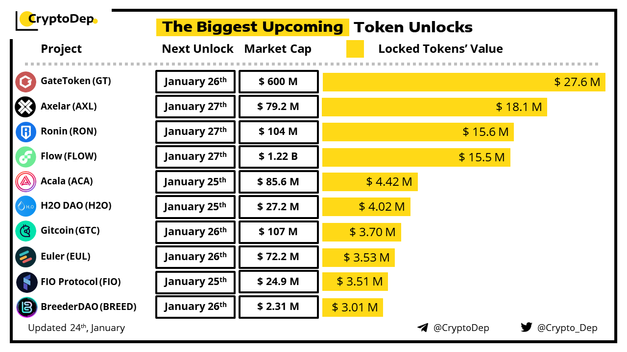 Let's take a look at the compilation of the biggest upcoming token unlocks, diving into details such as dates, amounts, and projects related to tokens that are currently locked up, but will soon be released to the market.