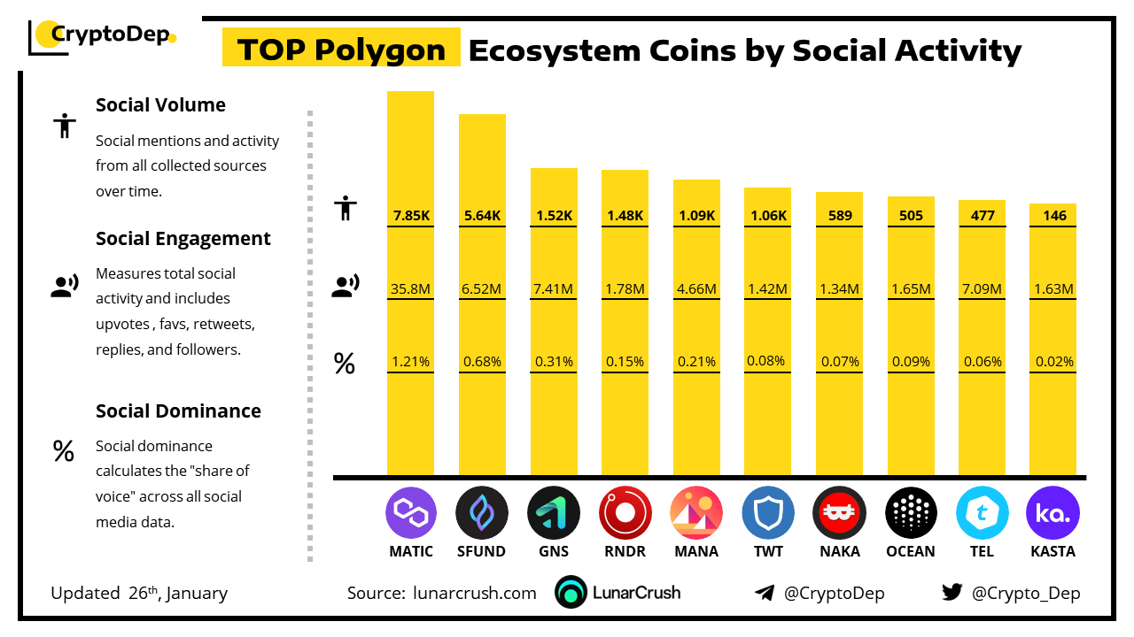 Social Engagement measures total social activity and includes upvotes, favs,retweets, replies, and followers.