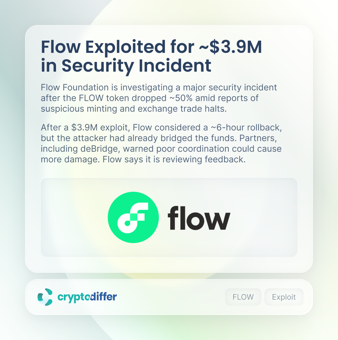After a $3.9M exploit, Flow considered a ~6-hour rollback, but the attacker had already bridged the funds. Partners, including deBridge, warned poor coordination could cause more damage. Flow says it is reviewing feedback.