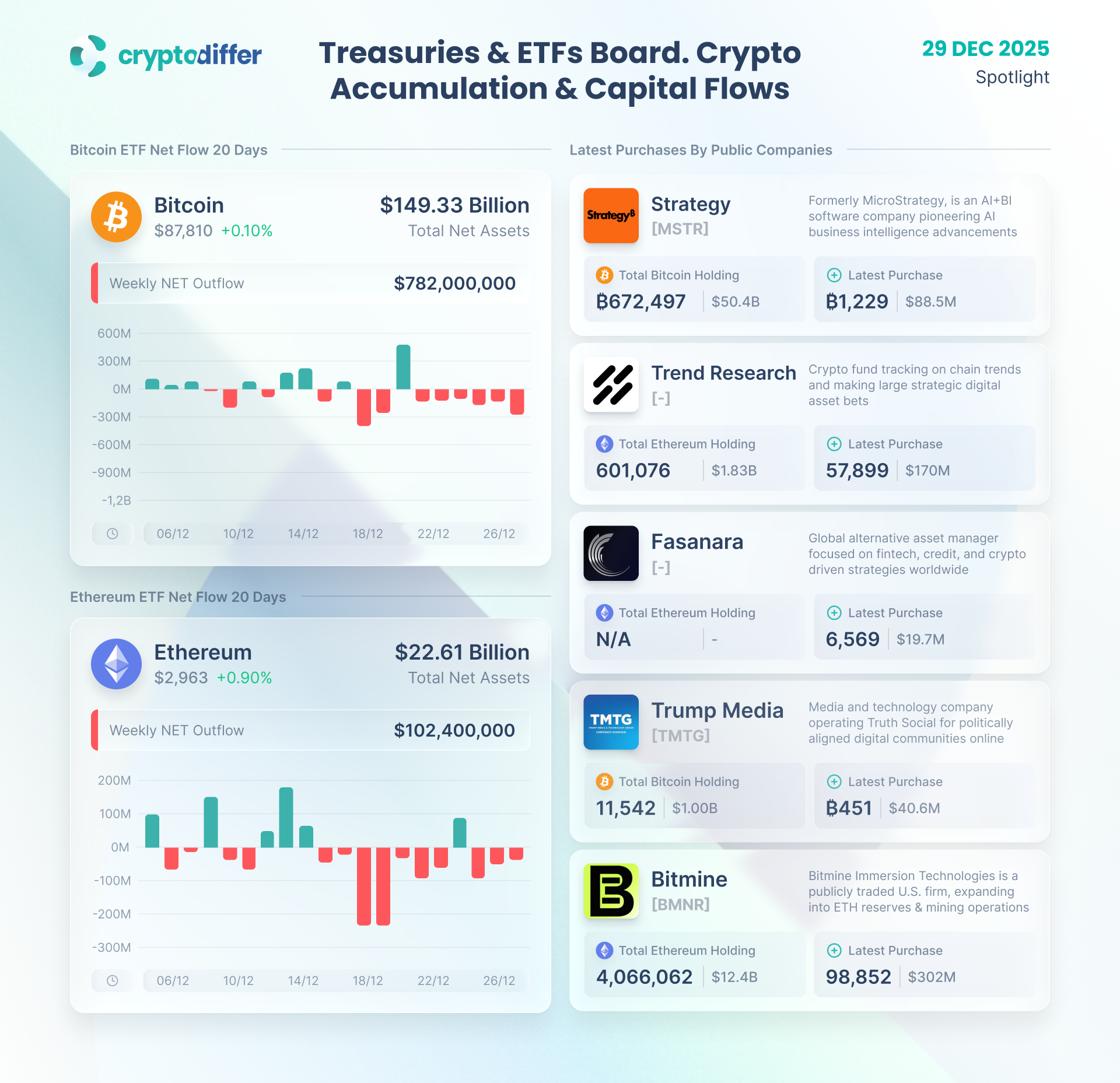 Treasuries & ETFs Board. Crypto Accumulation & Capital Flows