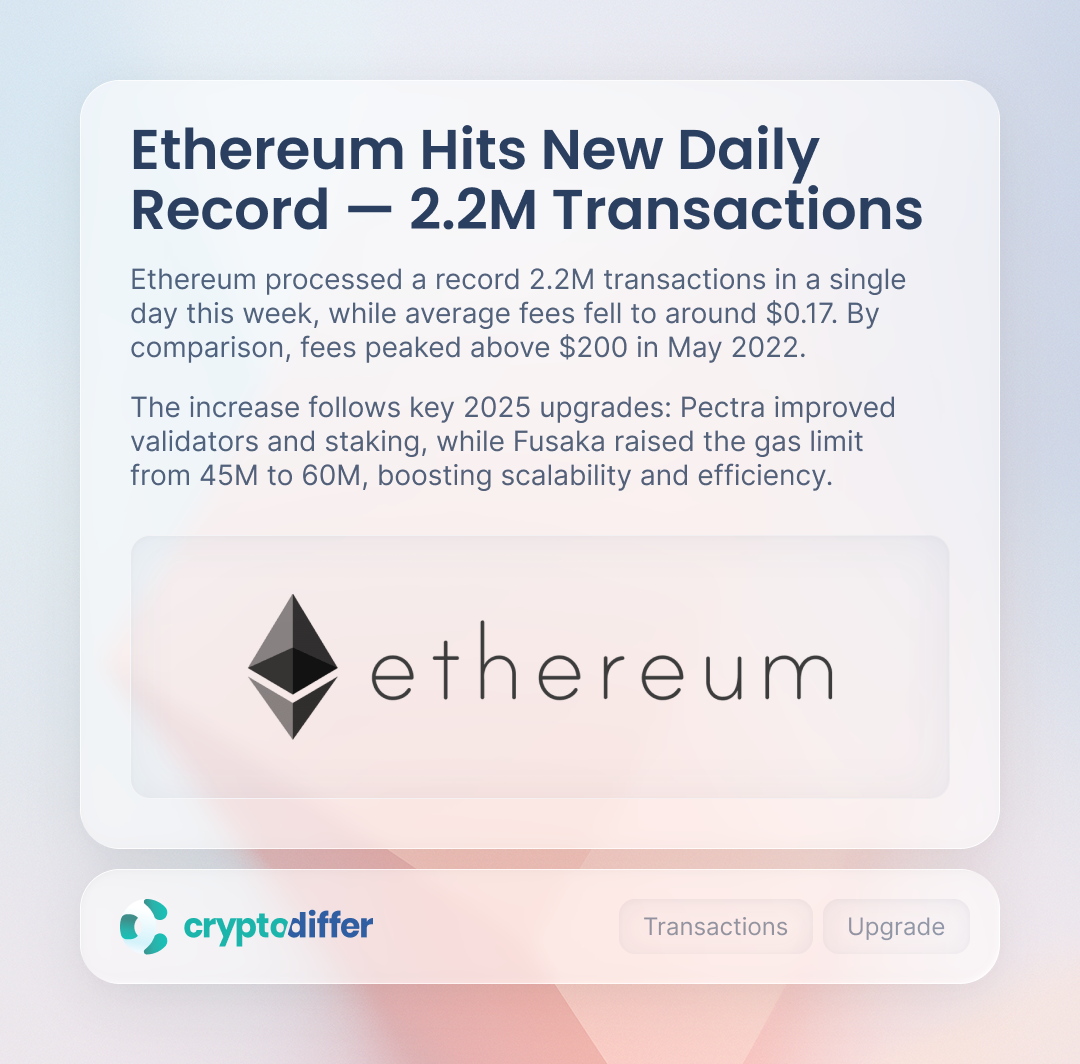 Ethereum Hits New Daily Record With 2.2M Transactions