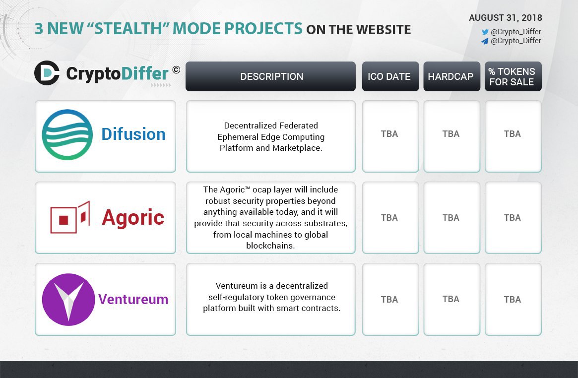 Three new "stealth" mode projects on CryptoDiffer