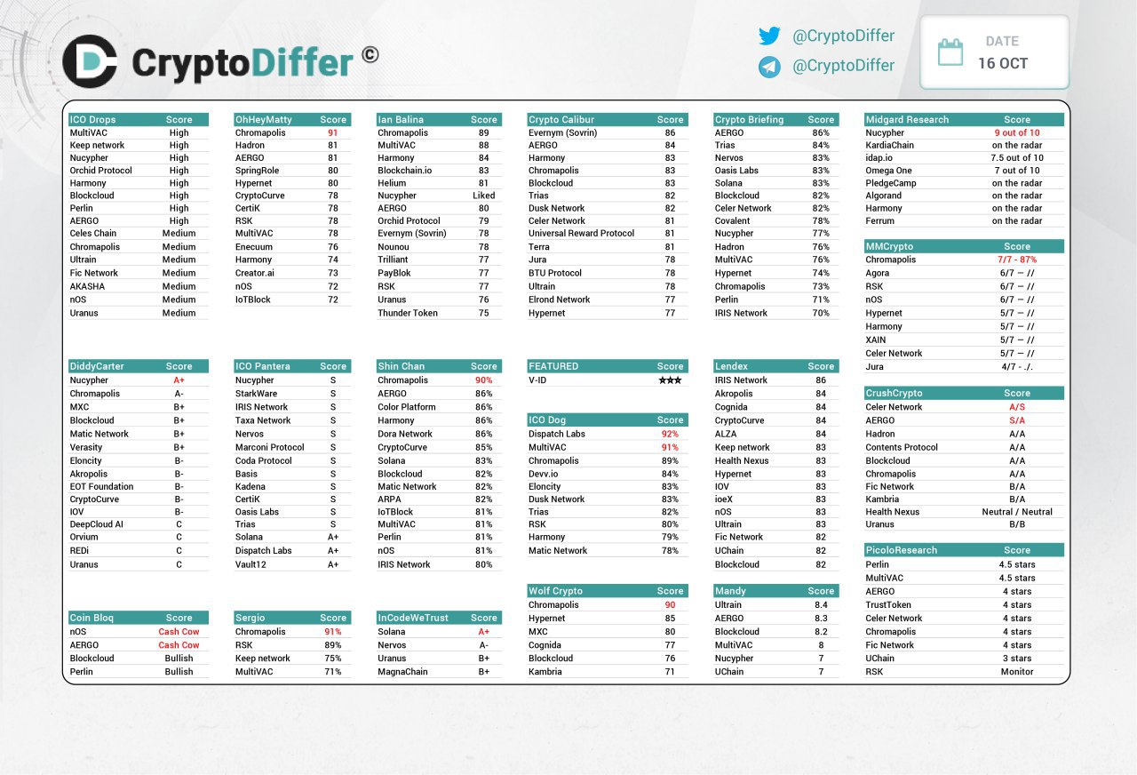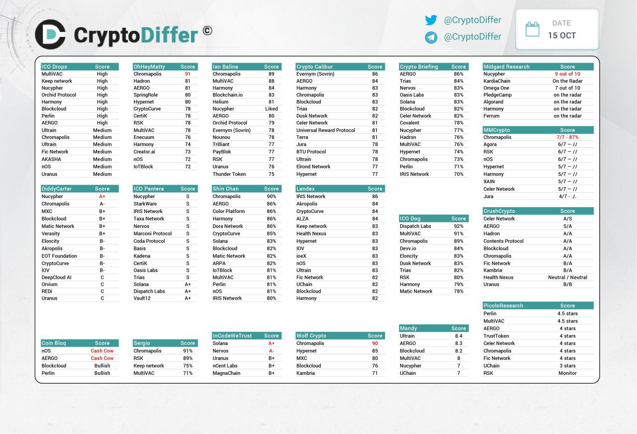 Ian Balina: Blockchain.io 83, Chromapolis 89, Harmony 84, Lightstreams 71, Kiip 74, RSK 77, Symbioses 73