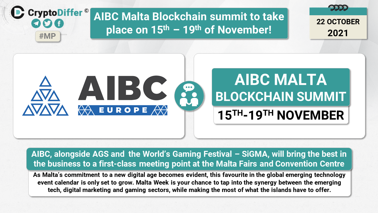 AIBC Malta Blockchain summit to take place on 15th – 19th of November! CryptoDiffer team is planning to visit the AIBC Malta Blockchain summit!