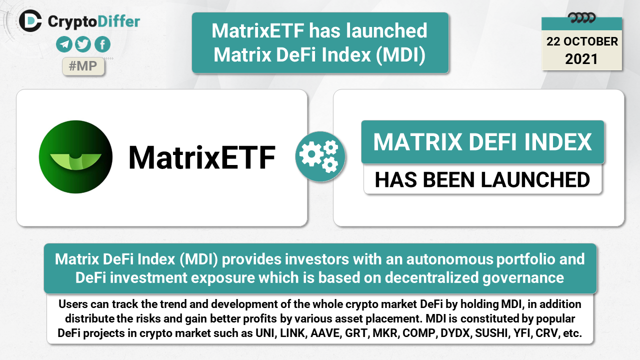 MatrixETF has launched Matrix DeFi Index (MDI)