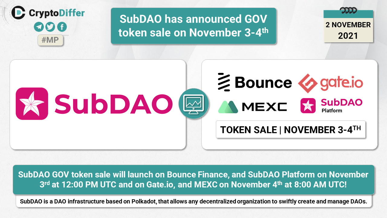 SubDAO has announced GOV token sale on November 3-4th!