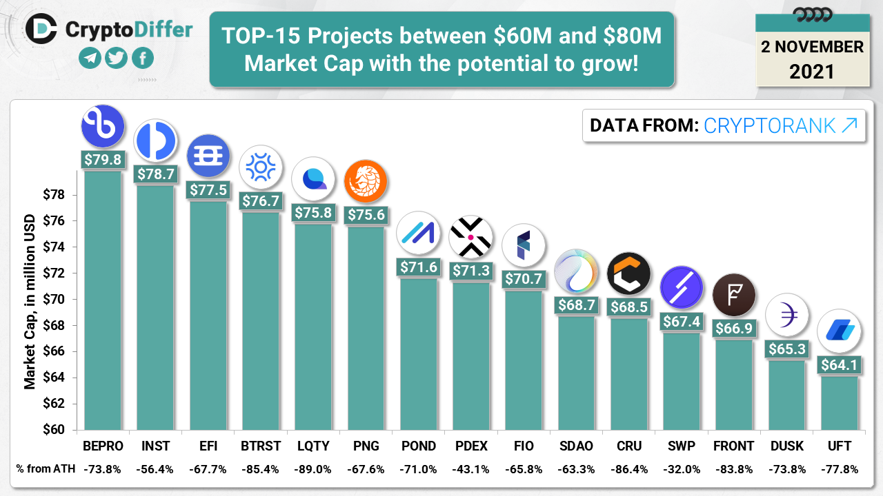 TOP-15 Projects between $60M and $80M Market Cap with the potential to grow!