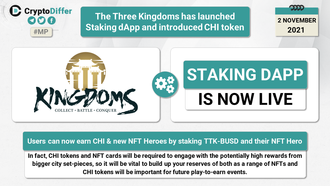 The Three Kingdoms has launched Staking dApp and introduced CHI token