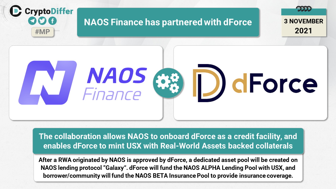 The collaboration allows NAOS to onboard dForce as a credit facility, and enables dForce to mint USX with Real-World Assets backed collaterals.