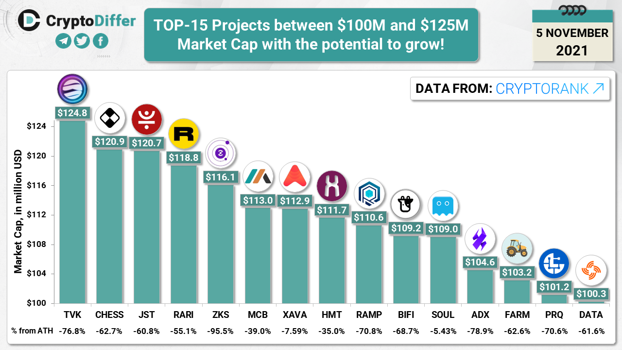 TOP-15 Projects between $100M and $125M Market Cap with the potential to grow!