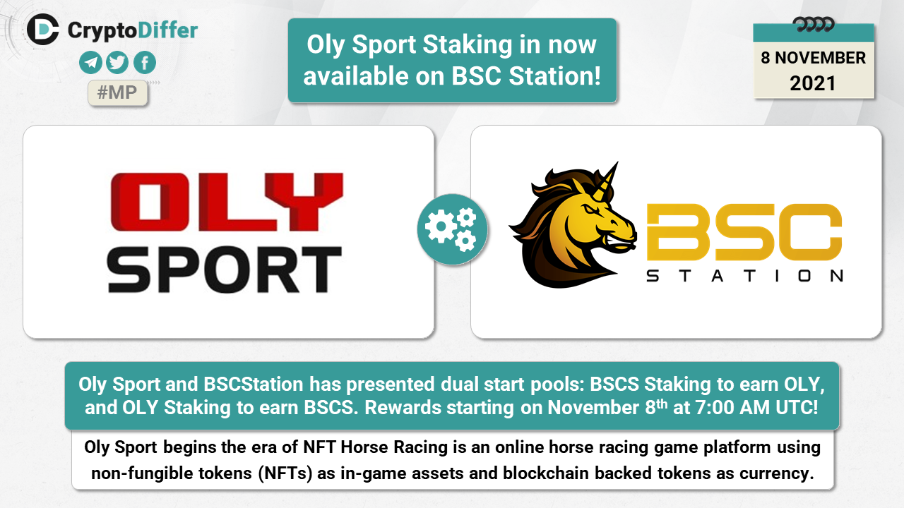 Oly Sport and BSCStation has presented dual start pools: BSCS Staking to earn OLY, and OLY Staking to earn BSCS. Rewards starting on November 8th at 7:00 AM UTC.