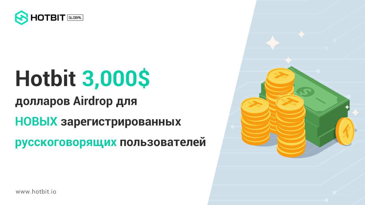 Аirdrop от Hotbit $3000 для НОВЫХ зарегистрированных русскоязычных пользователей