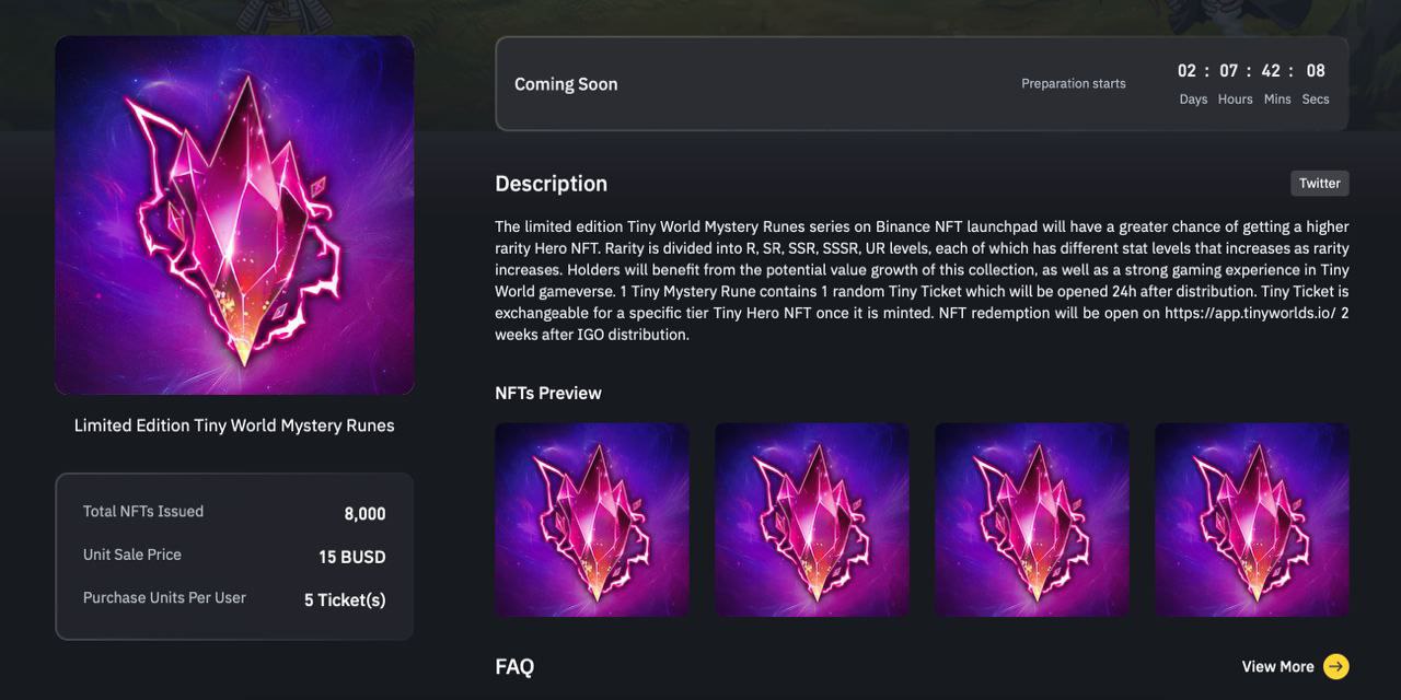Новое IGO на Binance NFT Marketplace от Tiny World Mystery Runes💎