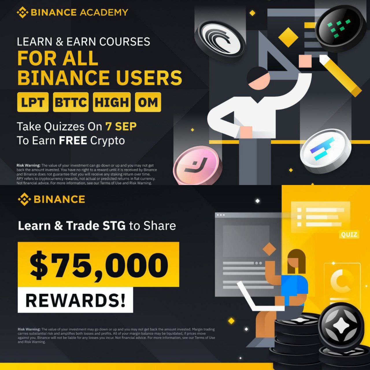 Бинанс анонсировала новый квиз, в токенах LPT, BTTC , HIGH OM