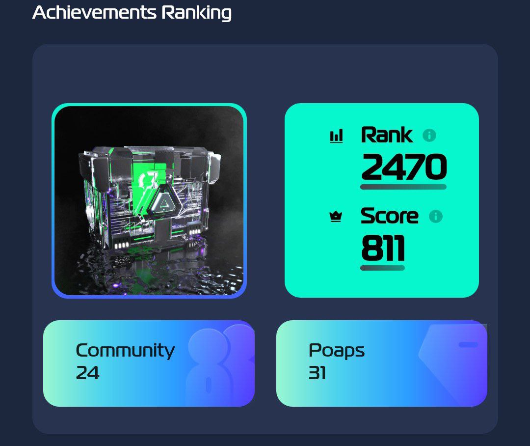 В подразделении "My Achievements Ranking" можете посмотреть сколько поинтов вам припало. Доля жетонов вознаграждения зависит от количества значков POAP/OAT, которыми владеете вы и ваши друзья.