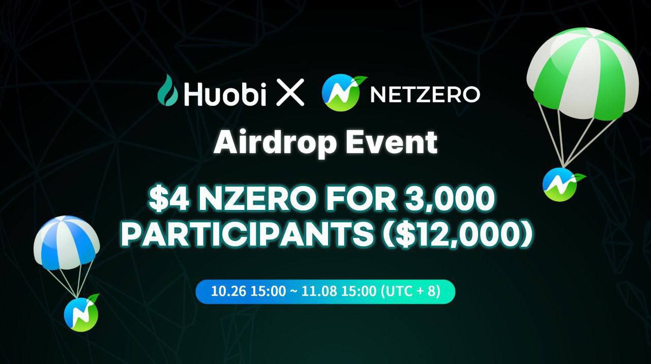 Участвуем в дропе от HUOBI & NetZero, 3000 рандомных участников получат по 4$ в токенах Nzero, токен торгуется на МЕХС, адрес можно указать с МЕХС. Для участия заполняем форму