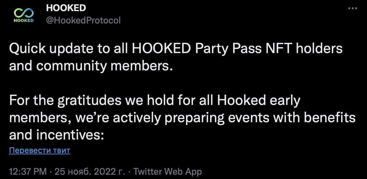 2⃣Если у вас нет пропуска NFT сегодня, не волнуйтесь. Всего есть 99.999 NFT для Hooked Party Pass (раздали только 43к), остальные NFT будут предоставлены сообществу различными способами в ближайшие месяцы;