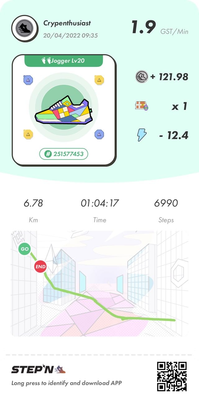 В основном аккаунте я гоняю в зелёный джоггерах 20-го уровня. Жена донашивает серый треники 22-го уровня. В день мы имеем около 140 монет GST (более 600$). Предположу, что когда я закончу строить эту «ферму», и обе основные пары будут прокачена до 28-30 уровня, ежедневно мы сможешь нахаживать под 200 монет (более 800$). Это стратегия номер раз;