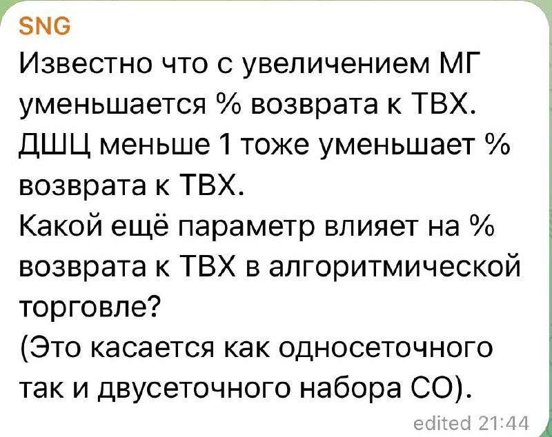 Какой ещё параметр влияет на % возврата к ТВХ в алгоритмической торговле?